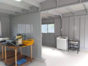 間仕切り壁(受注生産) を設けることで、物置や作業場となります。