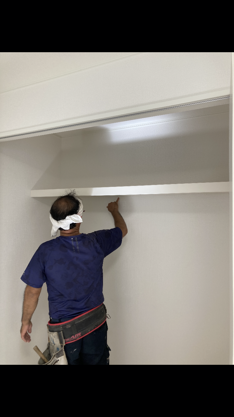 今回施工した内容は、エアコン、枕棚、地デジアンテナ、網戸、面格子、カーテンレール、ロールスクリーン、室内物干し、フロアコーティング(シリコンコーティング)、食器棚を施工致しました。