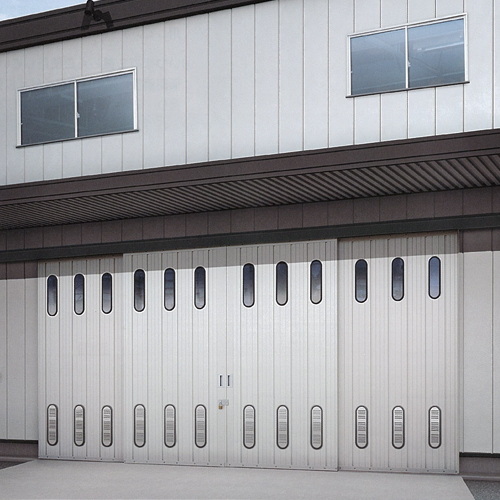 倉庫や工場などの広い開口部でも開閉スムーズなハンガードア。大径ローラーで大きなドアでも小さな力で開閉が可能です。大型車両の出入り、製品や資材の搬入・搬出もスムーズになり作業効率もあがります。